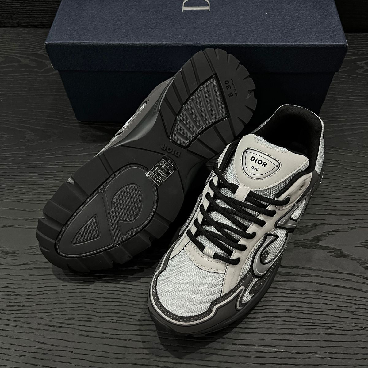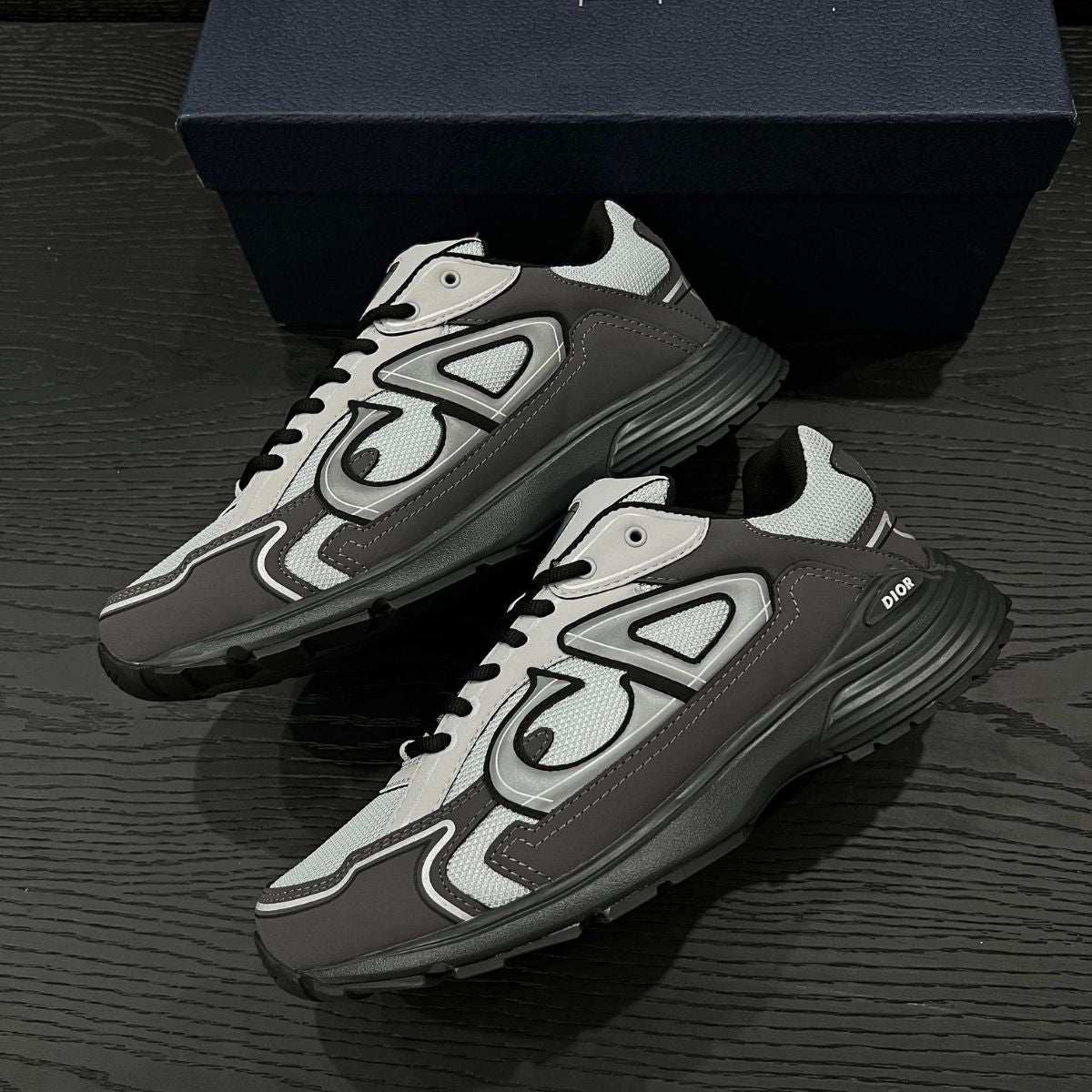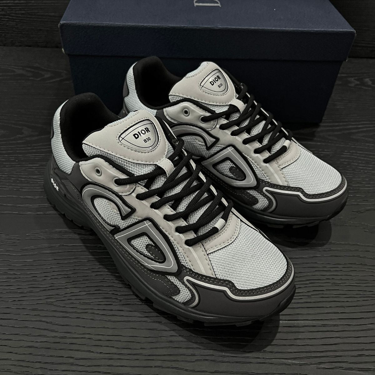 O Dior B30 Countdown é mais do que um tênis; é uma obra-prima da alta-costura que une elegância, performance e design futurista. Inspirado no mundo da corrida, este modelo apresenta uma silhueta moderna e esportiva, confeccionada com malha técnica de alta qualidade e detalhes em tecido técnico que garantem leveza e flexibilidade excepcionais . Cada par é adornado com o icônico logotipo "CD30" refletivo, visível nas laterais, sola e calcanhar, conferindo um toque de sofisticação discreta. A sola de borracha ultraleve e moldada não só proporciona conforto superior, mas também destaca o design aerodinâmico da peça.